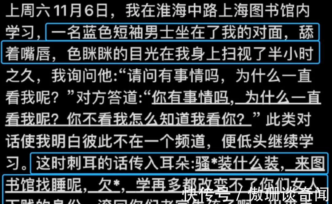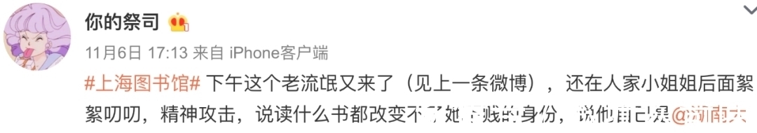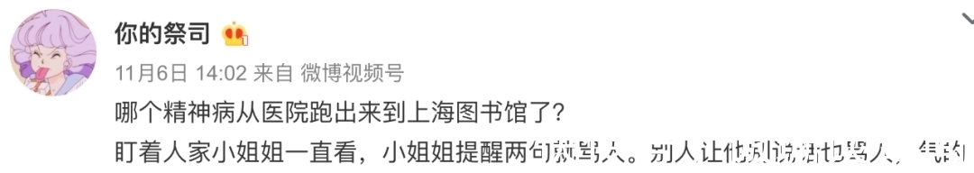 最近,网友@你的祭司爆料称,在上海图书馆内,一名蓝衣男子一直盯着女生看,令人感到非常不适。